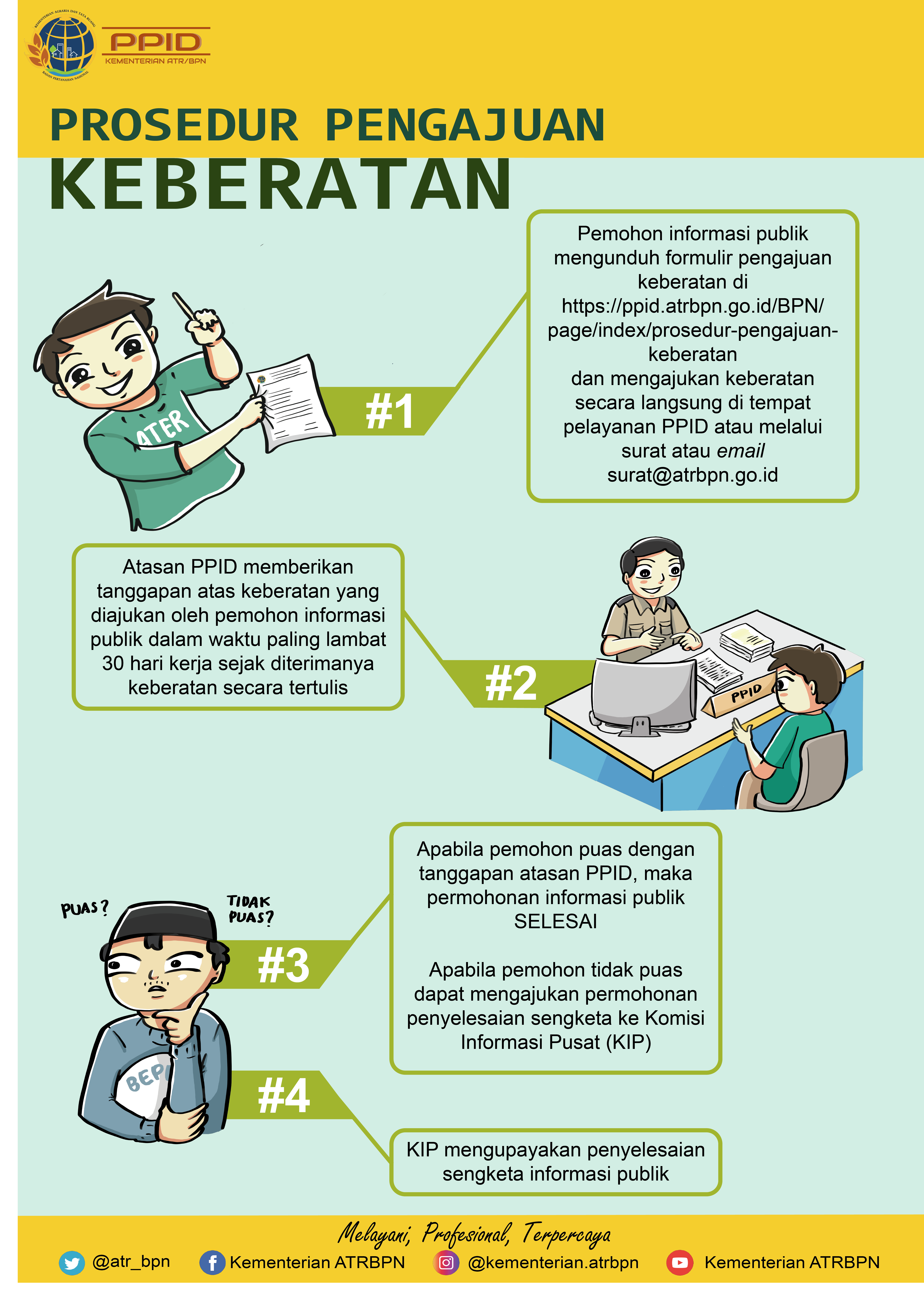 Pengajuan keberatan dapat di sampaikan secara tertulis, melalui surat elektronik, atau melalui sistem layanan informasi resmi Kementerian Agraria dan Tata Ruang/ Badan Pertanahan Nasional; Formulir dapat di